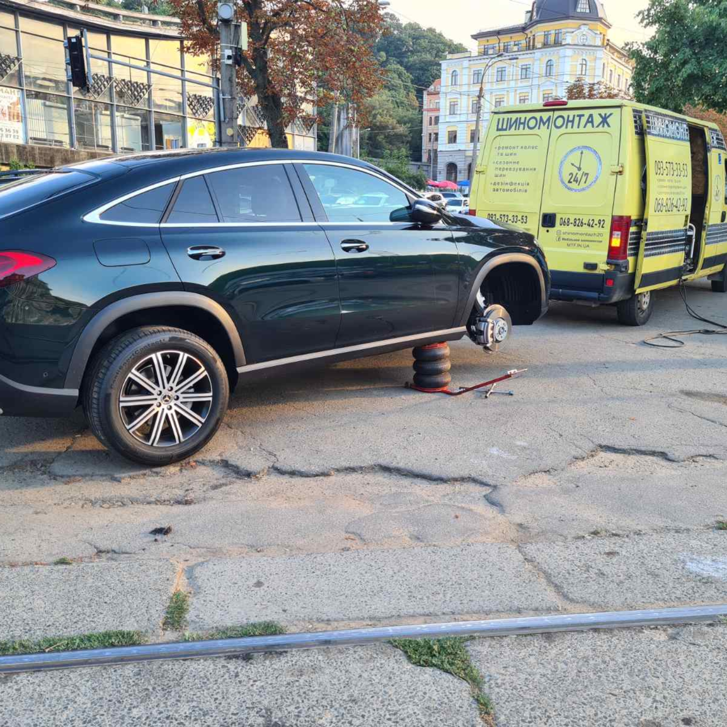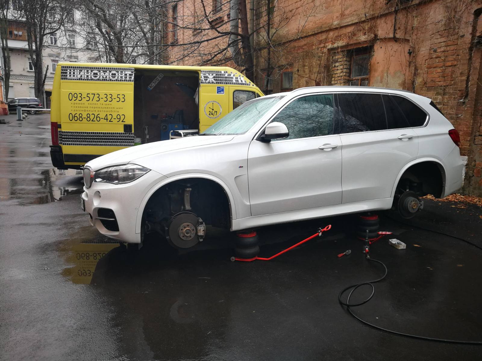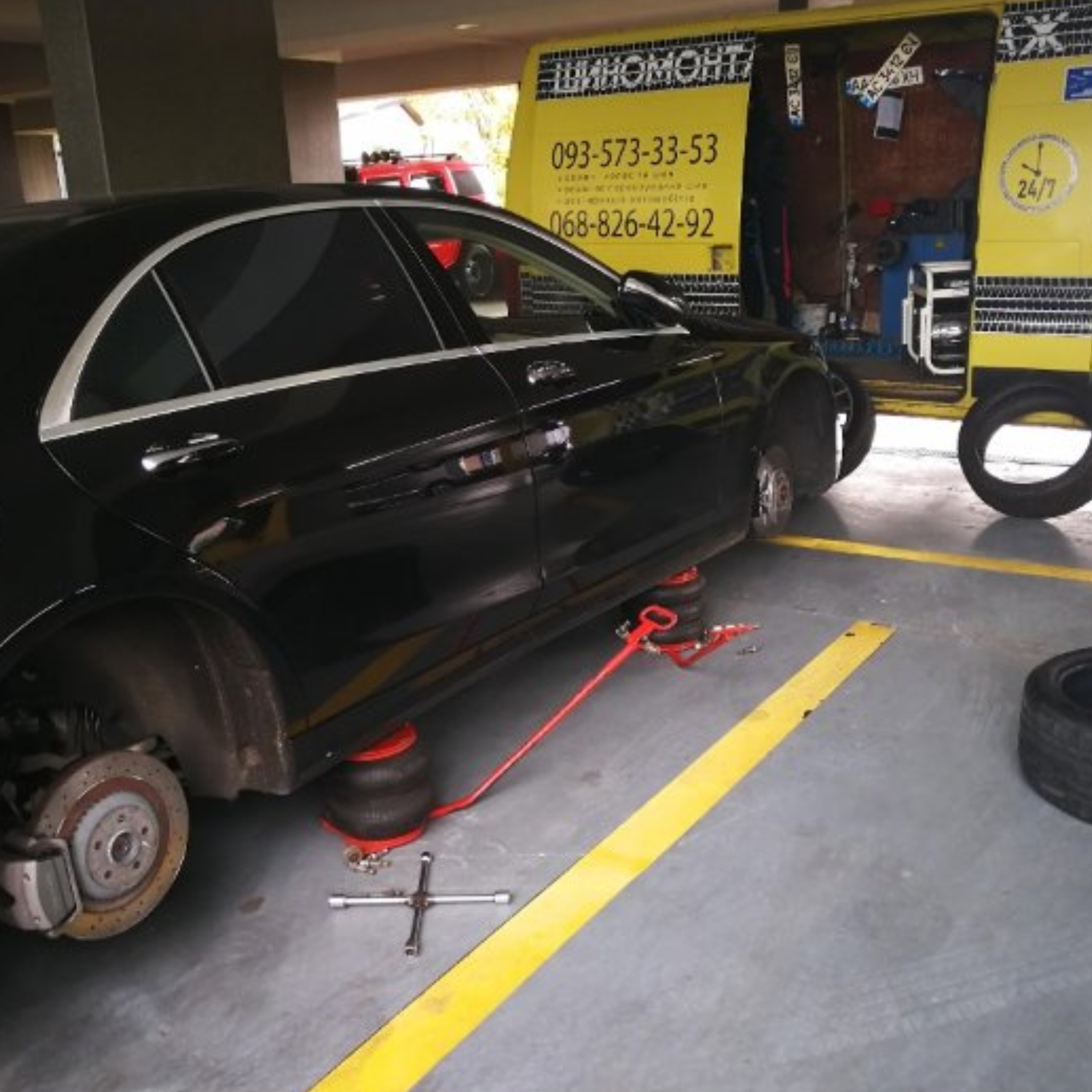 Не намагайтеся змінювати колеса самостійно - дбайте про свою безпеку. Зателефонуйте нам, і мобільний шиномонтаж приїде до вас у будь-який час і в будь-яку точку Києва, щоб якісно виконати будь-яку роботу: заміну коліс, балансування, монтаж/демонтаж, усунення порізів і проколів. У будь-якому районі міста і навіть за його межами ми гарантуємо високу якість і оперативність надання послуг.